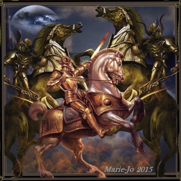 CE SONT DES PERSONNAGES CELESTES ET MYSTERIEUX LEURS CHEVAUCHEES INAUGURE LE COMMENCEMENT DE LA FIN DU MONDE, CAR ILS APPARAISSENT LORSQUE L'AGNEAU , FIGURE DE JESUS RESSUSCITE, OUVRE LES 4 PREMIERS SCEAUX.. BIEN QU'ILS PARAISSENT SE SUCCEDER DANS LE TEMPS, LE DERNIER VERSET PARAIT SUGGERER QUE LEURS CHEVAUCHEES SONT SIMULTANEES..